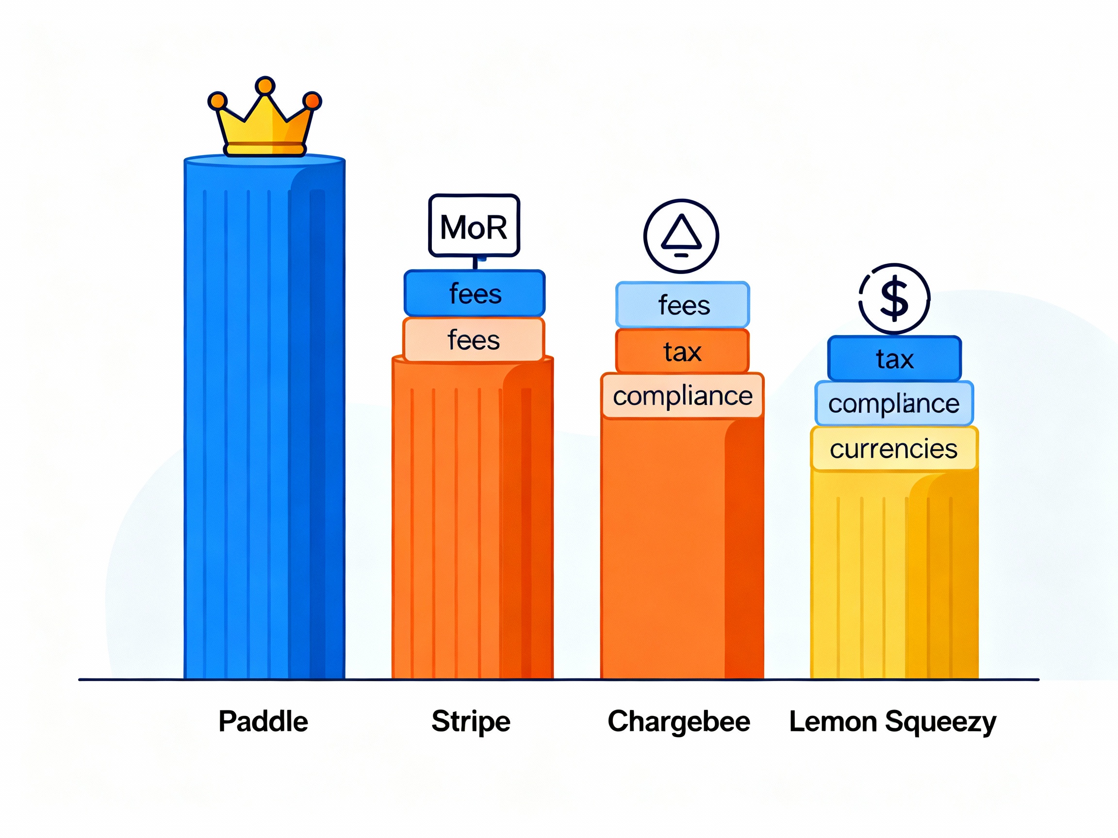 Чтобы понять, насколько Paddle подходит именно вам, его нужно сравнить с альтернативами. Главный водораздел проходит между все-в-одном Merchant of Record (MoR), как Paddle, и Платежными процессорами (PSP), как Stripe, которые требуют самостоятельной сборки инфраструктуры.
